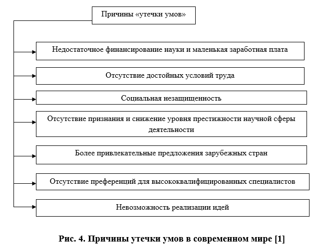 Таким образом, среди основных причин «утечки мозгов» за рубеж следует выделить следующие (см. рис. 4).