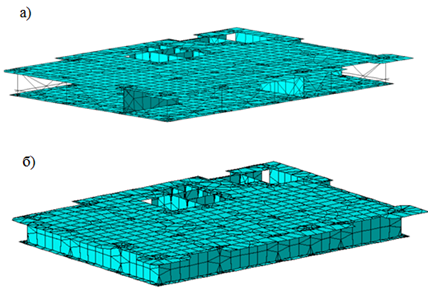 Рис.3. Вторая форма колебаний: а) первая модель; б) вторая модель