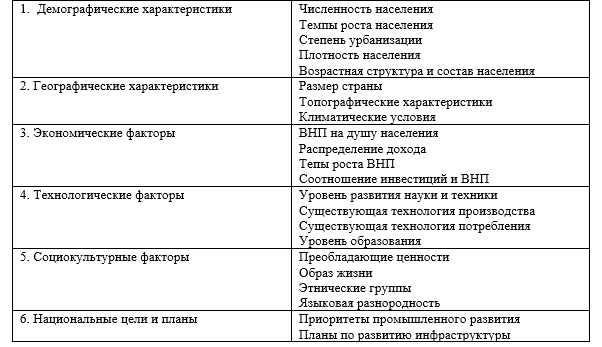 Внешняя зарубежная среда характеризуется следующими обобщенными факторами: экономическими; политическими; правовыми; социально-культурными; факторами государственного регулирования предпринимательской деятельности; прочими факторами (см. рис. 2).