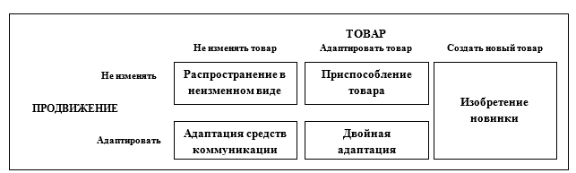 Рисунок 4 – Стратегии производства товара и его продвижения на зарубежном рынке