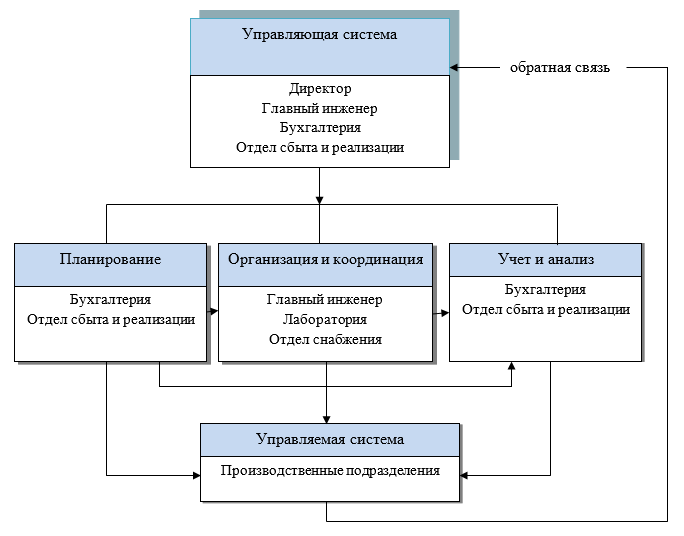 Процесс управления конкурентоспособностью продукции координируется управляющей системой, которая представлена директором, главным инженером, бухгалтерией и отделом сбыта и реализации. Эти и другие подразделения и уполномоченные лица на разных этапах участвуют в его реализации. Воздействие на управляемую систему оказывается на каждом этапе реализации процесса, причем оно регулируется управляющей системой через обратную связь. Очевидно, что процесс управления конкурентоспособностью продукции на предприятии носит фрагментарный характер – отсутствуют такие важные его составляющие как контроль, оценка и регулирование. Следствием этого и является несовершенная система управления конкурентоспособностью продукции. Поэтому, основная проблема предприятия в управлении конкурентоспособностью продукции – несовершенство самого процесса управления.