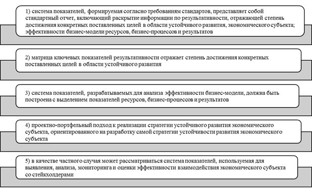 При принятии управленческих решений информация по устойчивому развитию экономического субъекта посредством финансовых и нефинансовых показателей должна быть систематизирована. Рассмотрим основные подходы к формированию системы показателей устойчивости развития экономического субъекта (рисунок 2).