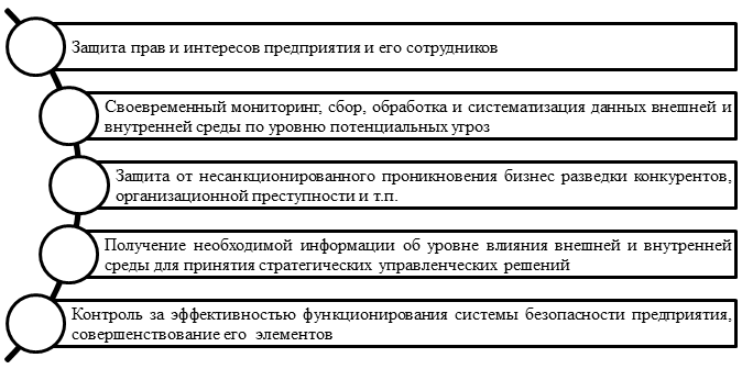 Задачи системы безопасности определены границами ее функционирования. С.А. Хмелев основной задачей экономической безопасности предприятия считает «проведение анализа и диагностики финансово-хозяйственной деятельности предприятия с целью выявления наступления банкротства, возможности восстановления баланса и недопущения неплатежеспособности».