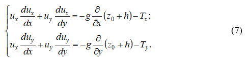 Система дифференциальных уравнений в частных производных (11) описывает течение двухмерных в плане открытых стационарных потоков в горизонтальном водоводе без учёта сил сопротивления потоку.