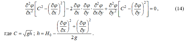 Система уравнений (13) сводится к одному уравнению второго порядка в частных производных относительно потенциальной функции ![]()