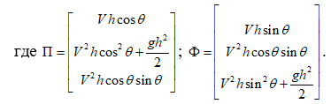 Для определения величин V2, h2, d воспользуемся уравнением стационарного движения потока в интегральной форме без учёта сил сопротивления потоку: