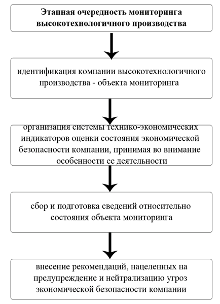 Этапная очередность мониторинга высокотехнологичного производства предполагает конкретную последовательность осуществления (рисунок 4) [2].