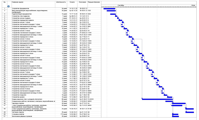 Так, при проектировании здания девятиэтажного общежития ФГБОУ ВО «Южно-Российском государственном политехническом университете (НПИ) имени М.И. Платова» в г. Новочеркасске Ростовской области возникла необходимость в увязке нескольких десятков работ, проводимых одновременно на разных захватках.