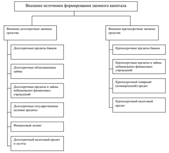 На рисунке 2 представлены внешние источники формирования заемного капитала предприятия.