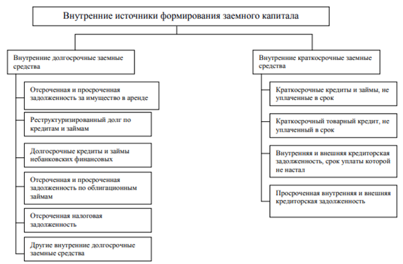 Рисунок 3 - Внутренние источники формирования заемного финансового капитала предприятий