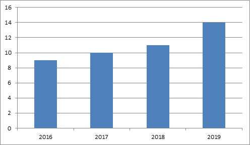 Рис.2 Динамика изменений НМР на изучаемых предприятиях в период с 2016 по 2019 год