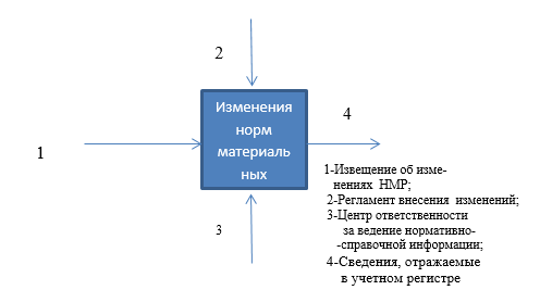 Рис. 3 Контекстная диаграмма учета изменений норм материальных ресурсов, задействованных в потоке создания ценности