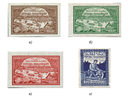 Обращение к почтовым материалам (к маркам) не является случайным, далее в настоящей статье речь пойдет о почтово-благотворительных выпусках марок 1921-1922 гг. – в помощь населению, пострадавшему от голода. Такого рода филателистические материалы (их реализация) позволили повысить эффективность принимаемых государственных мер, направленных на ослабление и предотвращение голода.