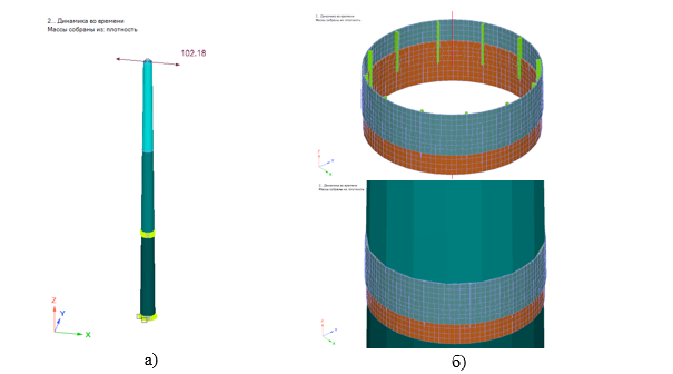 Рисунок 5 –Расчетная модель ветроэлектрической установки а) общий вид модели; б) общий вид телескопического стыка.
