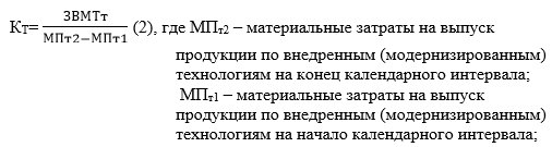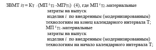 По мнению автора, срок окупаемости ЗВМТ не должен превышать одного года , а их распределение необходимо осуществлять по окончании установленных календарных интервалов производственного цикла, равных 1-му месяцу. Коэффициент Кт распределения ЗВМТТ равен отношению суммы этих издержек к приращению экономии материальных затрат на выпуск продукции , произведенной с использованием внедренных (модернизированных) технологий (2) :