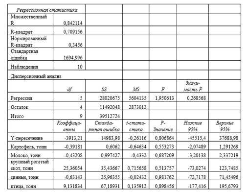 Рисунок 1 – Результаты регрессионного анализа Знаменского района