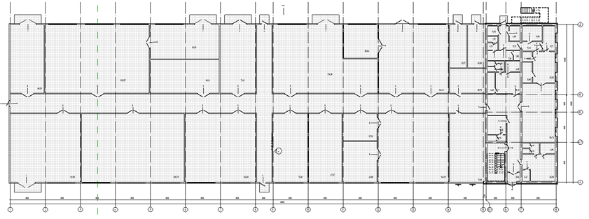 Производственный цех запроектирован одноэтажным, без подвала, коридорного типа, прямоугольной конфигурации в плане с размерами в осях 27,0х81,0м. К производственному цеху примыкает здание АБК. Здание АБК двухэтажное, без подвала, коридорного типа, прямоугольной конфигурации в плане с размерами в осях 12,0х27,0м.