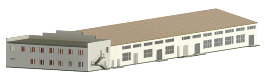 Апробация системы информационного моделирования была проведена на BIM проектировании производственного здания в ПК Autodesk Revit. Промышленное здание – строящийся производственный цех в сейсмическом районе респ. Ингушетия (расчетная сейсмичность площадки строительства – 8 баллов).