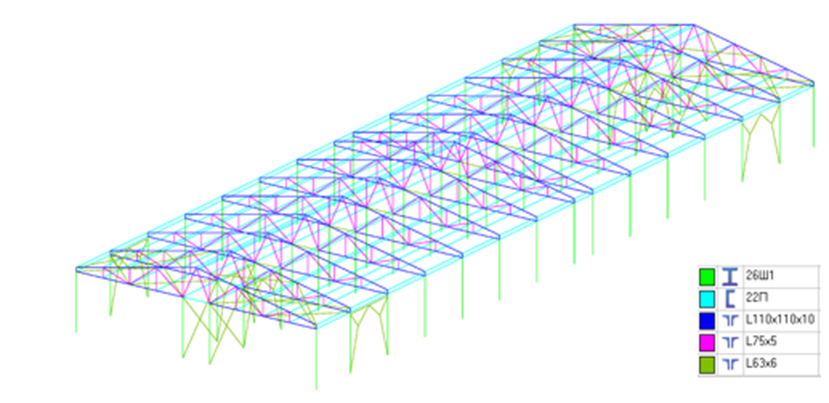 Рис. 9. Общий вид металлоконструкций каркаса