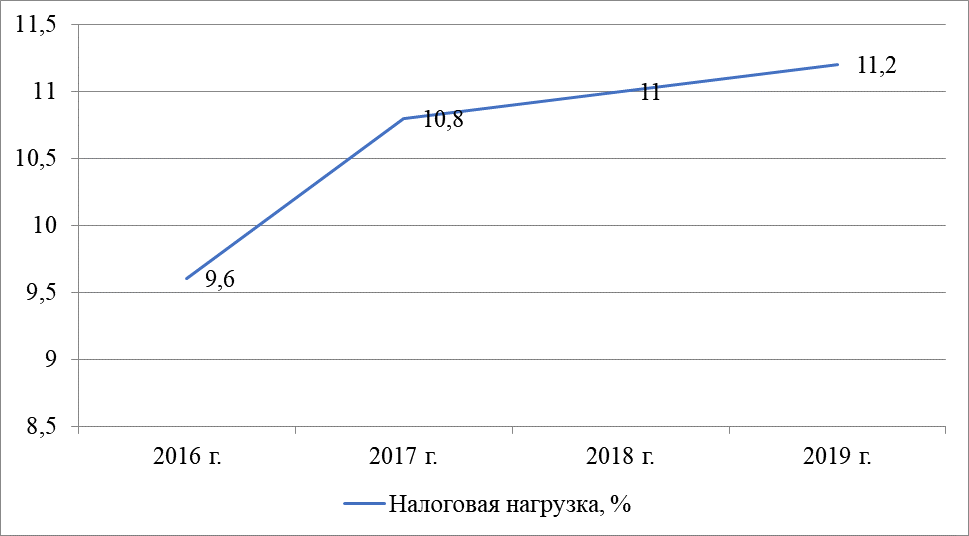 Рис. 1 – Динамика налоговой нагрузки на экономику России, 2016-2019 гг., % [8]