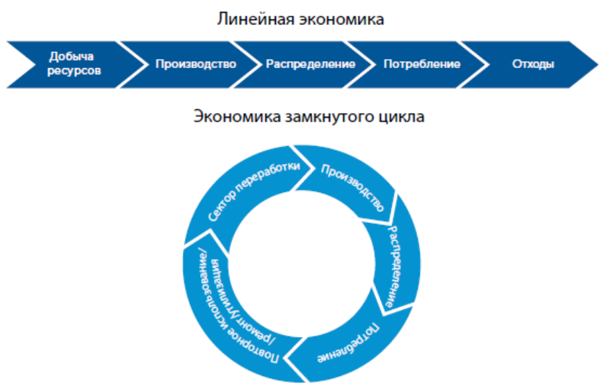 Рисунок 1 – Линейная экономика и экономика замкнутого цикла [6]