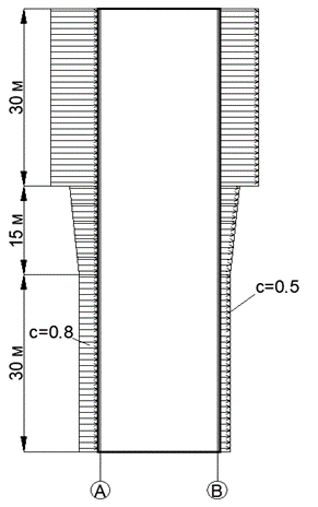с- аэродинамический коэффициент (принимаемый равным для наветренной и подветренной стороны 0.8 и 0.5)