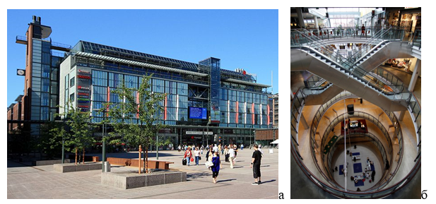 Рис. 7 а, б. Торговый центр Kampi (а - экстерьер, б - интерьер)