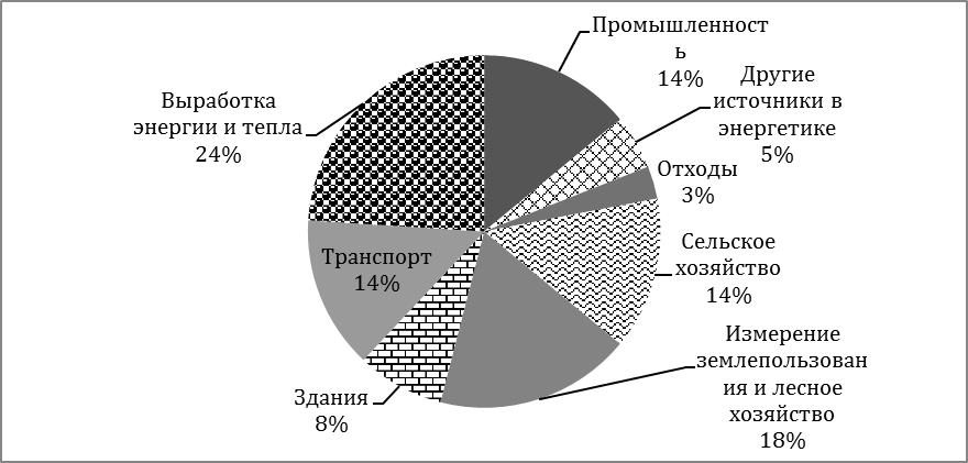 Рис. 2. Распределение глобальных выбросов парниковых газов по секторам экономики