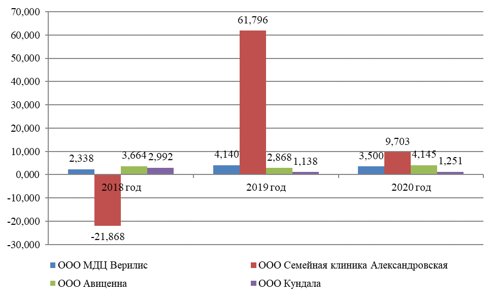 Исследование управления финансовыми рисками можно провести на примере нескольких предприятий одной сферы в разных регионах. Для анализа взяты четыре региона и соответственно 4 предприятия (сфера медицина): ООО «МЦ Кундала» (г. Москва); ООО «Семейная Клиника Алексанровская» (Челябинская область); ООО «Авиценна» (Ростовская область); ООО «ДМЦ Верилис» (г. Санкт-Петербург) [16]. Все они соответствуют критериям, относящим их к малому бизнесу, и занесены в реестр субъектов малого предпринимательства.