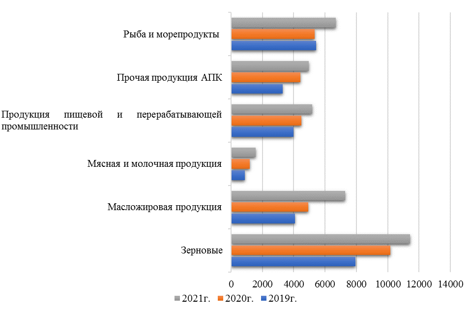 Рисунок 1 – Экспорт сельскохозяйственной продукции России, млн. долл.