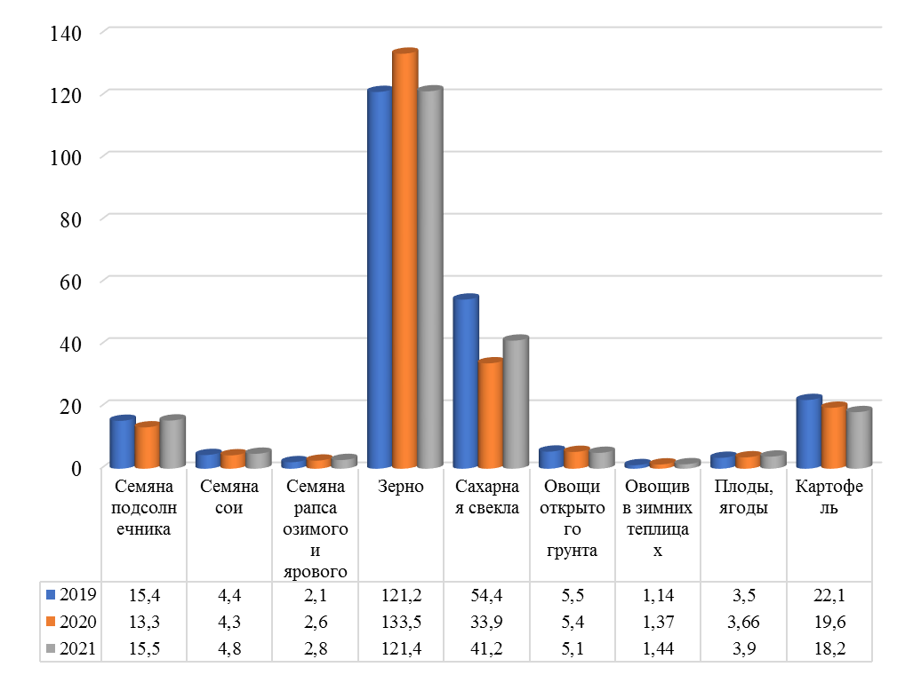 Полученные данные свидетельствуют об увеличении валового сбора в 2021 году по таким видам сельхозкультур как семена подсолнечника, сои, рапса, сахарной свеклы, овощей в зимних теплицах, плодов и ягод. Проседание некоторых видов культур в 2020 году было связано с погодными условиями, но несмотря на это, по оценке Минсельхоза России были достигнуты или превышены плановые значения уровня самообеспечения, предусмотренные в Доктрине Продовольственной безопасности.