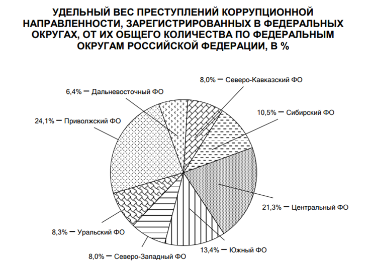 Успокаивает, в определенной степени, что Северо-Западный федеральный округ находится в числе отстающих по удельному весу преступлений коррупционной направленности, зарегистрированных в федеральных округах, от общего количества по федеральным округам Российской Федерации.