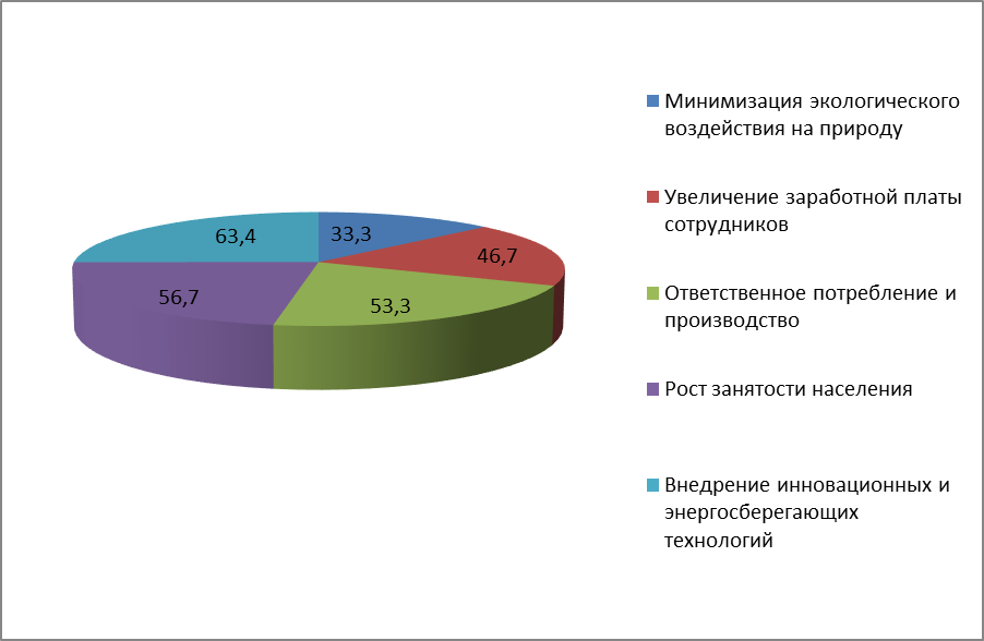 Из общего числа опрошенных по данным Росстат отметили, что для устойчивого развития промышленного предприятия необходимо внедрение инновационных и энергосберегающих технологий 63,4 %. Также среди опрошенных 56,7 % ответили, что для промышленного развития необходимо максимальная занятость населения, то есть, чем больше население занято в производстве тем выше уровень производительности труда, выпуска готовой продукции, что приводит к росту рентабельности промышленного предприятия [6].