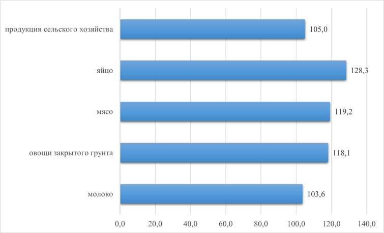 На начало 2022 года, в регионе в секторе сельского хозяйства уверенный рост растениеводства сопровождается значительным падением объемов производства продукции в области животноводства, что в целом позволяет сделать выводы об отрицательном приросте продукции в сельском хозяйстве (Рисунок 3).