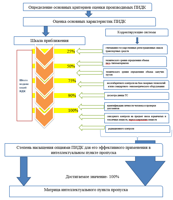 Целью настоящего исследования является оценка перечня сведений портальных ИДК (характеристики, конкурентоспособность, методы контроля, производительность и т.д.) отечественных производителей на основании исходных данных и разработка архитектуры критериев оценки ПИДК на примере производителя ООО «ИЗБ.А», г. Санкт-Петербург в целях использования комплекса в матрице интеллектуального пункта пропуска (далее – ИПП).