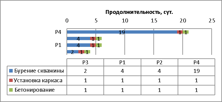 Общая продолжительность изготовления свай составила приблизительно 30 дней. Среднее время изготовления одной сваи было 3…4 дня (рис.8). Наибольший срок изготовления сваи составил 19 дней и отмечен у сваи TP4, изготовленной первой. Продолжительность изготовления сваи TP4 обусловлена как отсутствием опыта устройства столь глубоких свай, так и дополнительными сложностями производства работ в зимних условиях при температурах ниже -20 градусов (существенную часть времени установка простаивала).