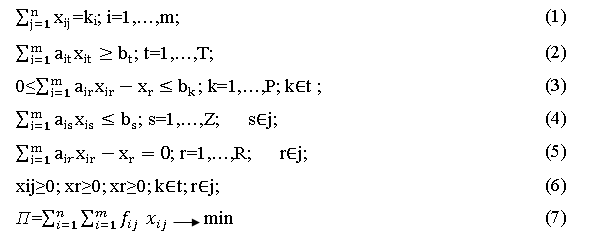 При наличии исходной информации предложенная модель может дополняться другими ограничениями и, в частности, ограничениями по сырьевым ресурсам: