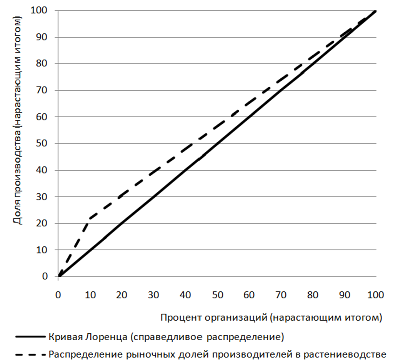 растениеводство, концентрация, структура, доля производства, кривая Лоренца
