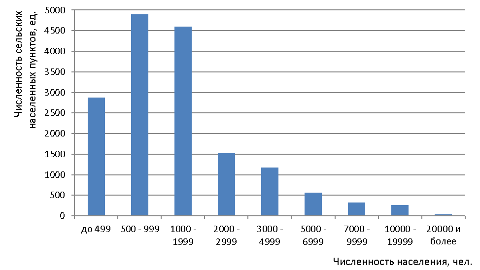 Мы также считаем целесообразным придерживаться такой классификации, так как объекты социальной инфраструктуры, определяющие качество жизни на сельских территорий планируются в зависимости от потребности населения в их услугах. В структуре сельского расселения преобладают сельские поселения с численностью 1000-1999 чел.
