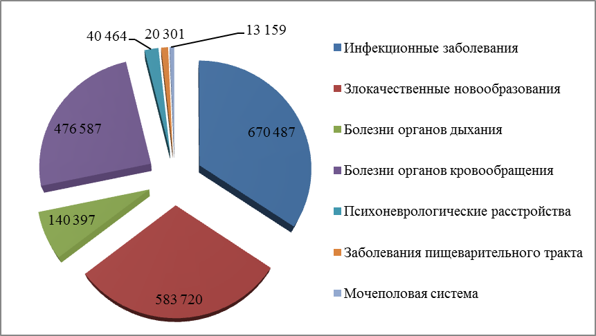 На инфекционные заболевания приходится больше всего смертей – 34,5%, на злокачественные заболевания – 30,0%, на болезни органов кровообращения – 24,5%, психоневрологические расстройства – 2,1%, заболевания пищеварительного тракта – 1%, заболевания мочеполовой системы – 0,7% [2-5].
