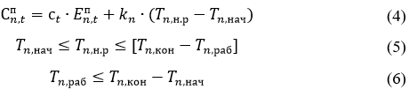 Система управления получает данные о стоимости энергии на час вперед от поставщиков энергоресурсов, при этом энергопотребление каждого n-го устройства в момент времени t можно описать уравнением (1).