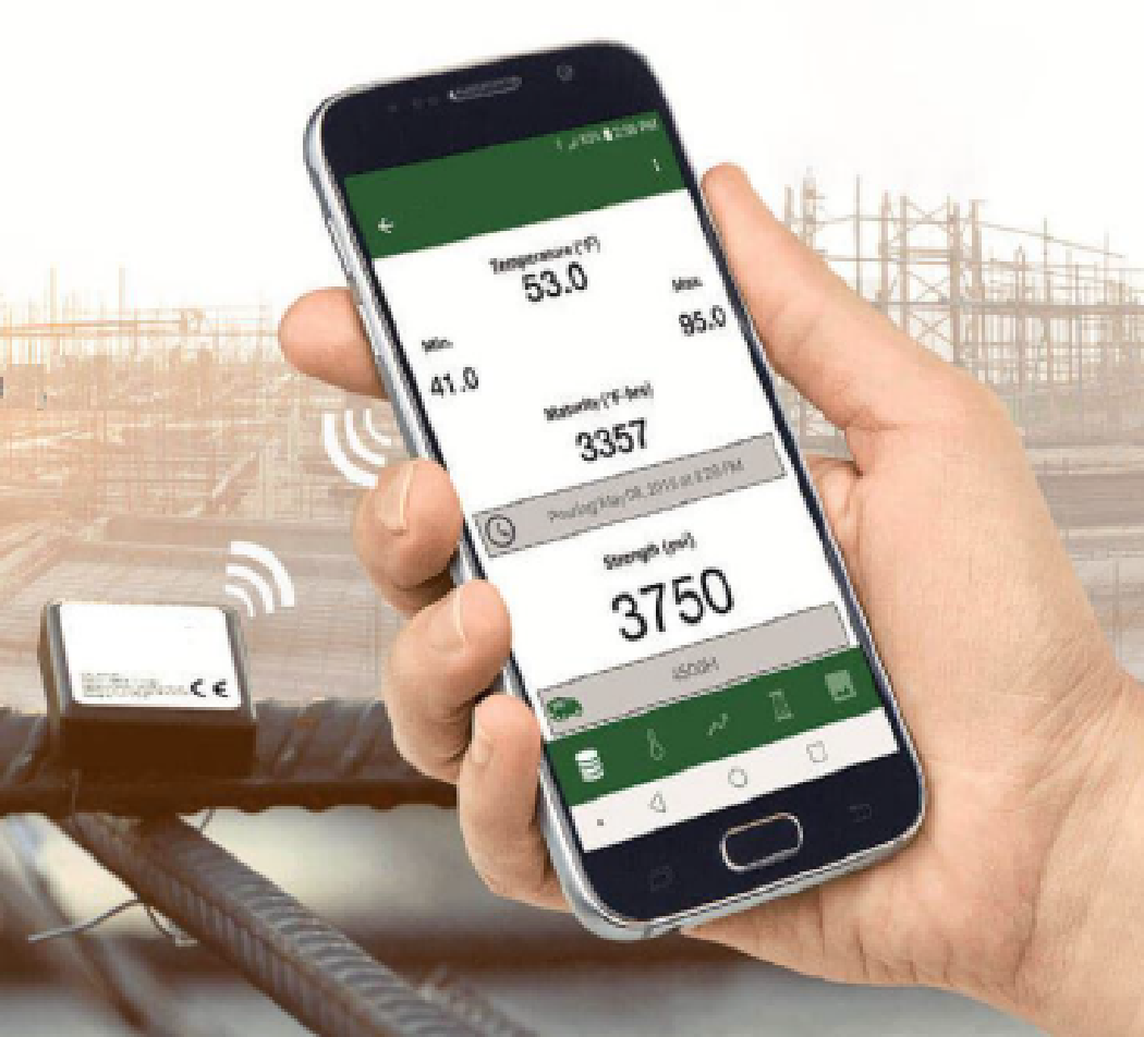 Система управления за бетонными работами состоит из беспроводного датчика, который крепится на арматуру перед заливкой бетона, и программного комплекса, который устанавливается на любой тип компьютера или мобильного устройства.