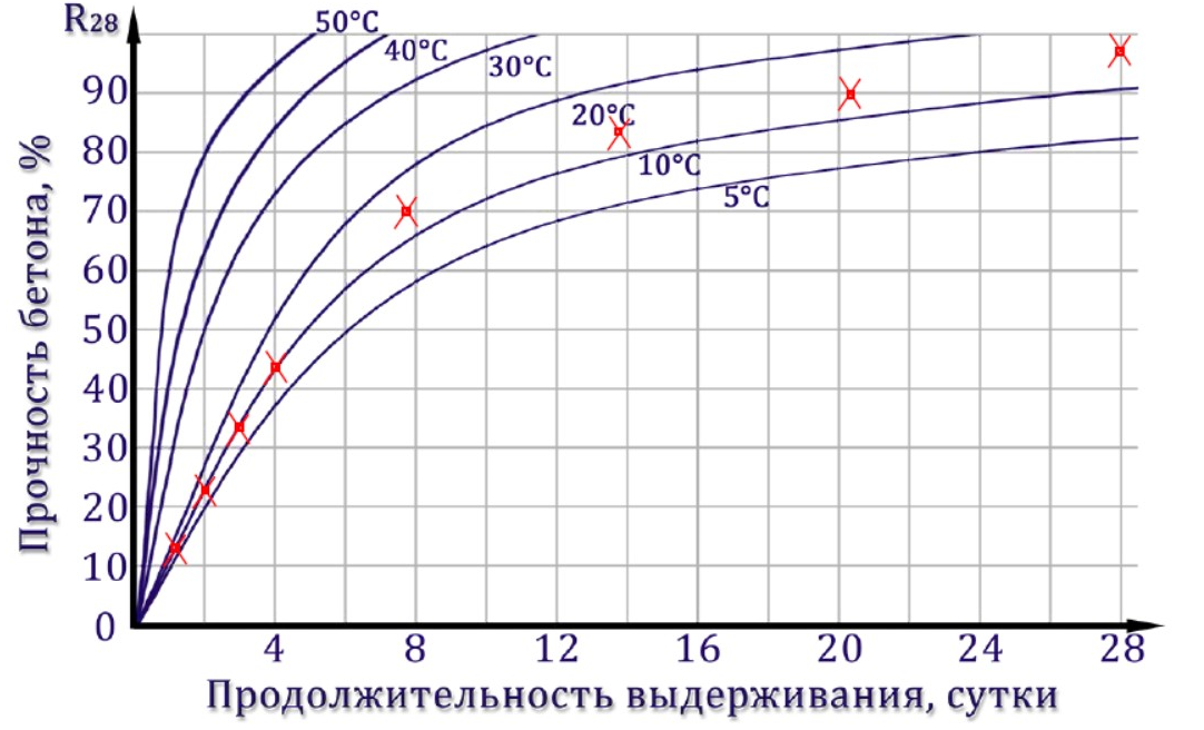 Как известно, набор прочности бетона зависит от многих факторов, многие части из которых являются переменными коэффициентами (температура и влажность окружающей среды, качество конкретной заливки, применяемые добавки и т.д.).