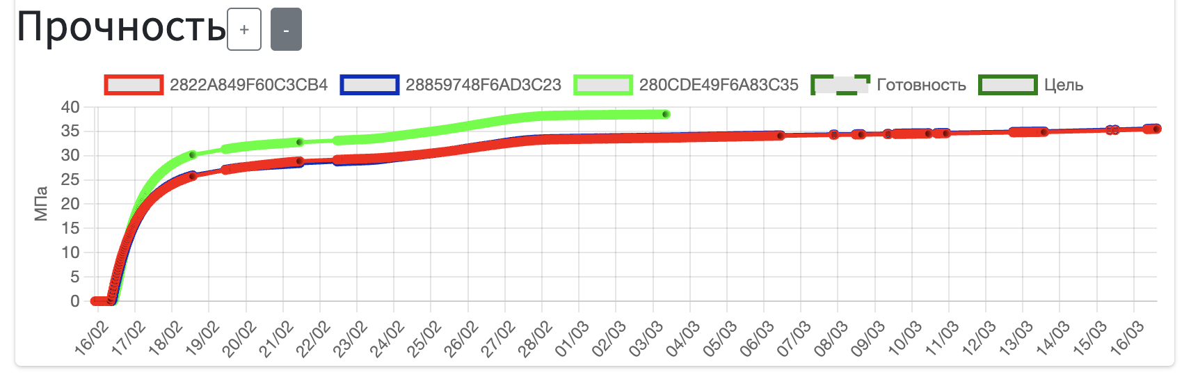 Шаг 3. После заливки передаются данные о состоянии бетона и ожидаемое время достижения конструкцией контрольных точек. Информация может передаваться как в виде ожидаемых сроков достижения бетоном контрольных точек, так и в виде актуального графика производства бетонных работ;