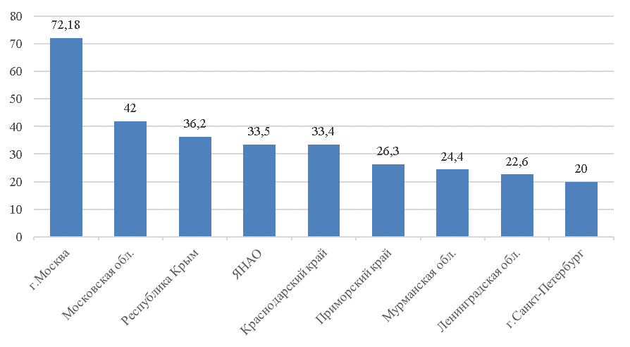 Схожи по численности проживающего населения также Северо-Кавказский и Дальневосточный округа. Однако инвестиции в основной капитал в расчете на 1 жителя Дальневосточного федерального округа превышает этот показатель по Северо-Кавказскому округу в среднем в 3 раза – как по совокупному, так и по бюджетному объему. Данный факт не вызывает удивления, поскольку на высшем уровне государственного управления экономическим развитием сегодня осуществляется поддержка этих геостратегических территорий с большим потенциалом роста; в частности, созданы особые, уникальные условия привлечения инвестиций. Так, созданное в 2012г. федеральное ведомство – ныне Министерство РФ по развитию Дальнего Востока и Арктики является администратором крупных государственных программ: «Социально-экономическое развитие Дальневосточного федерального округа», «Социально-экономическое развитие Арктической зоны РФ» и «Стратегическое развитие Дальневосточного федерального округа и Арктической зоны РФ». К слову, на федеральном уровне в период 2014-2020гг. вело деятельность и Министерство по делам развития Северного Кавказа.
