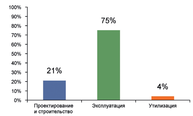 Рис. 1. Усредненные затраты на протяжении жизненного цикла здания