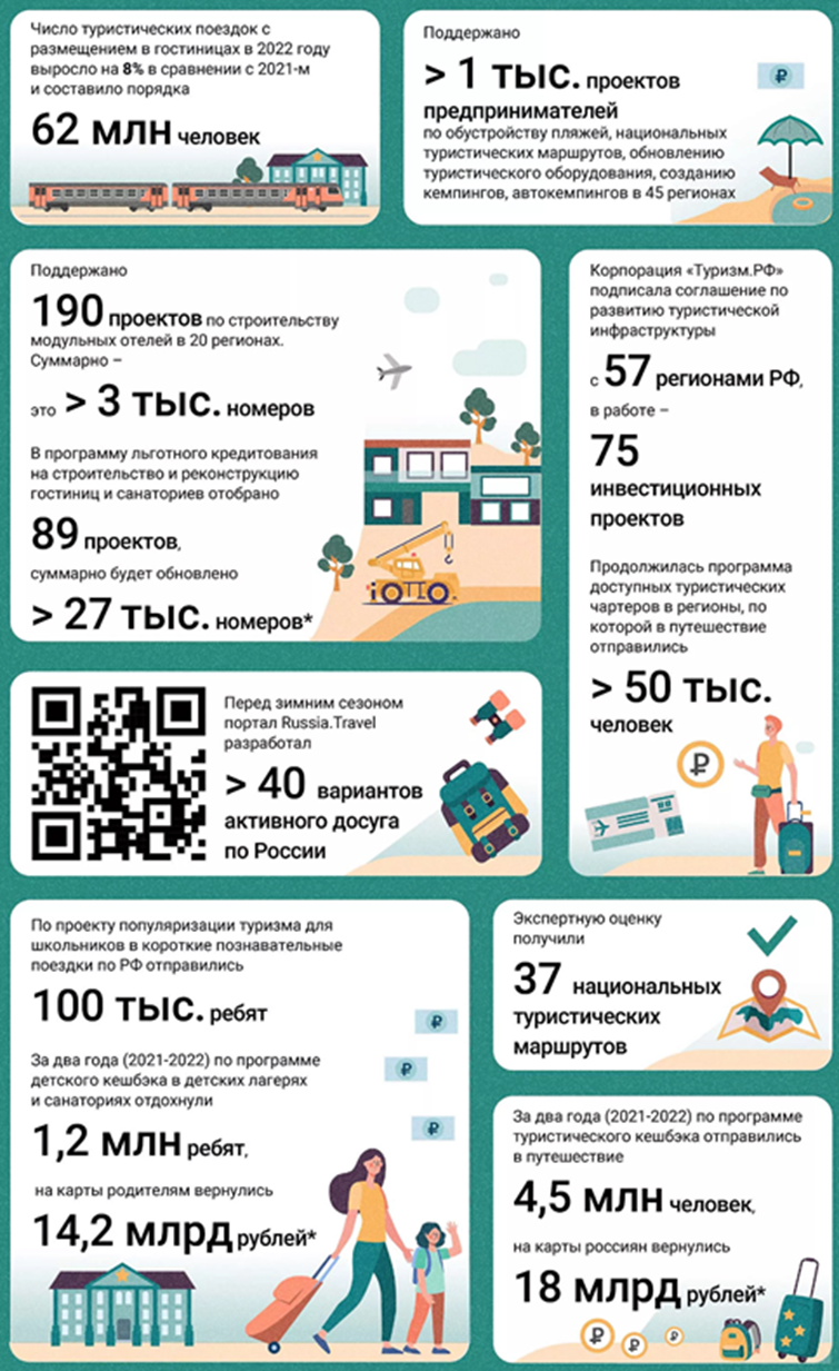 Рисунок 1 – Инфографика результатов национального проекта «Туризм и индустрия гостеприимства» в 2022 г.