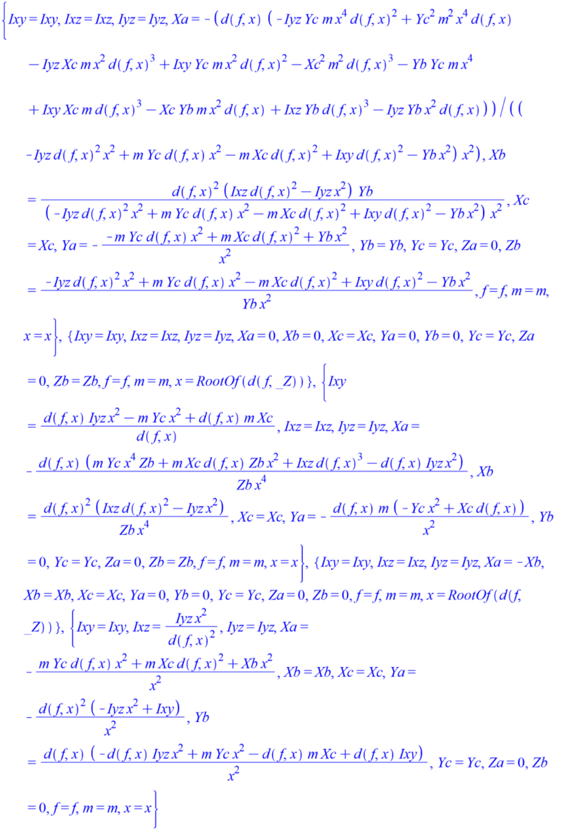 символьного нахождения динамических реакций связей в точках «А» и «В»