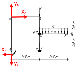 Рис. 2. Расчётная схема для определения динамических реакций связей