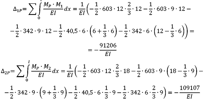Определяем свободные члены системы канонических уравнений, рис. 8: